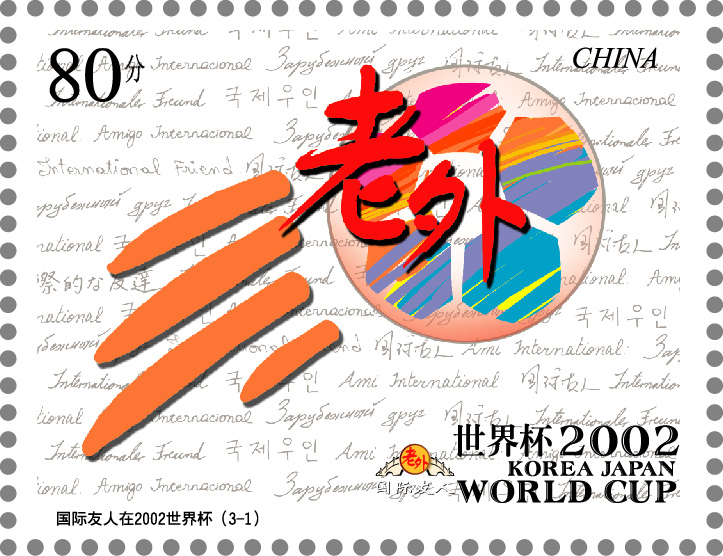Our idea was a bit unusual. We designed a Laowai set of stamps with the subject the World Cup 2002. We tried to circulate these stamps as an official mark. Unfortunately these stamps could not have been officially registered as an official stamp, but they have been so attractive and meaningful that they were published very often in the media , and thus they had become popular. To become the status of an official stamp is not impossible but extremely hard to obtain and needed at least 12 months. But never the less it was a very interesting project.